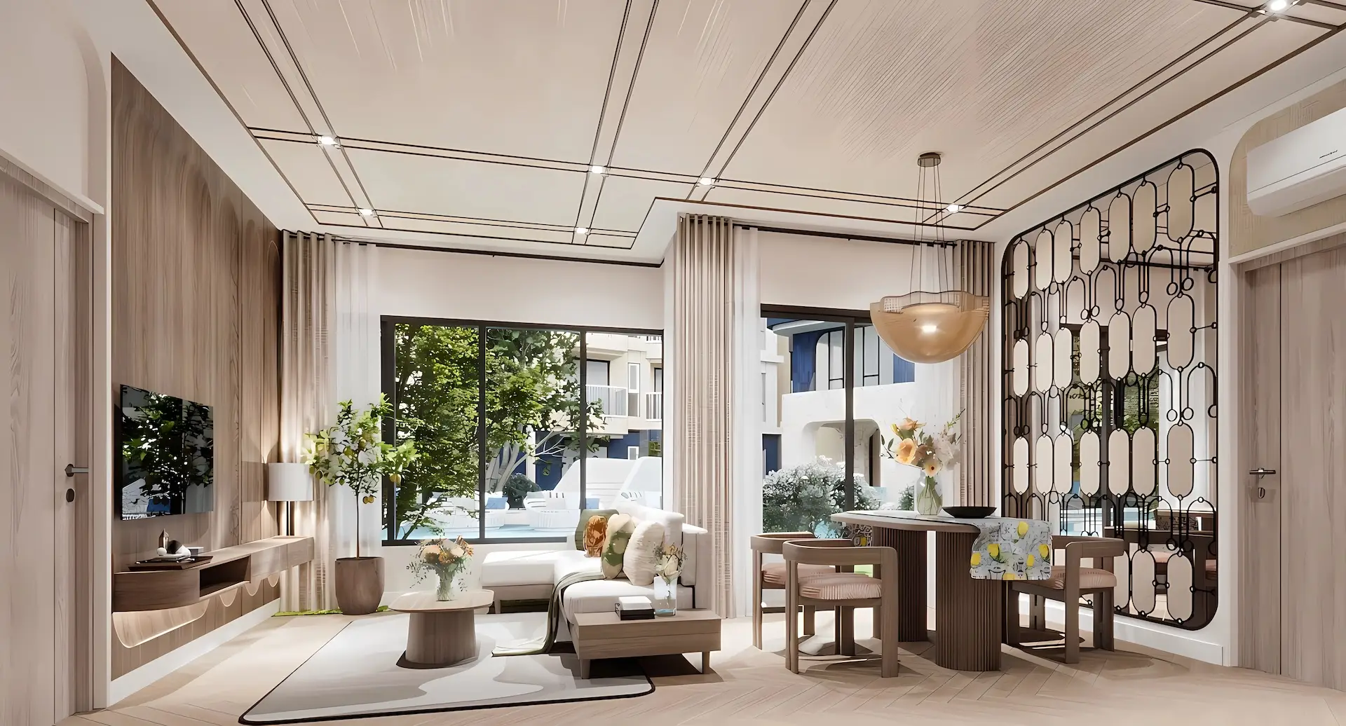 - Эксклюзивные апартаменты: Полностью меблированные студии, 1-, 2- и 3-спальные квартиры (30–120 м²) с итальянской эстетикой и функциональными планировками.