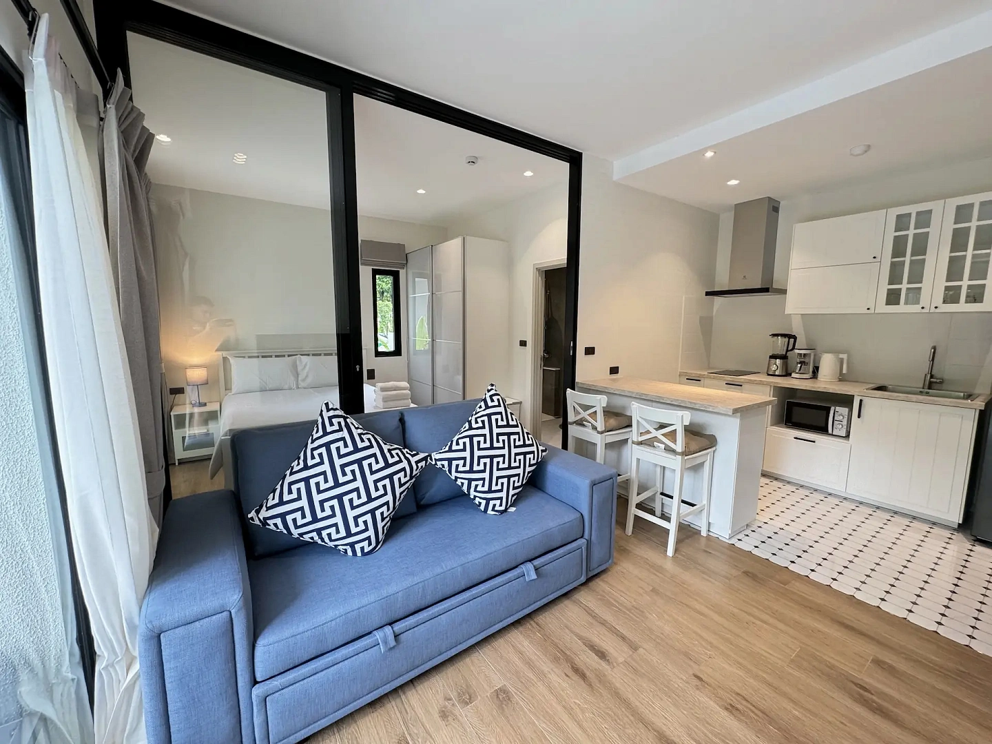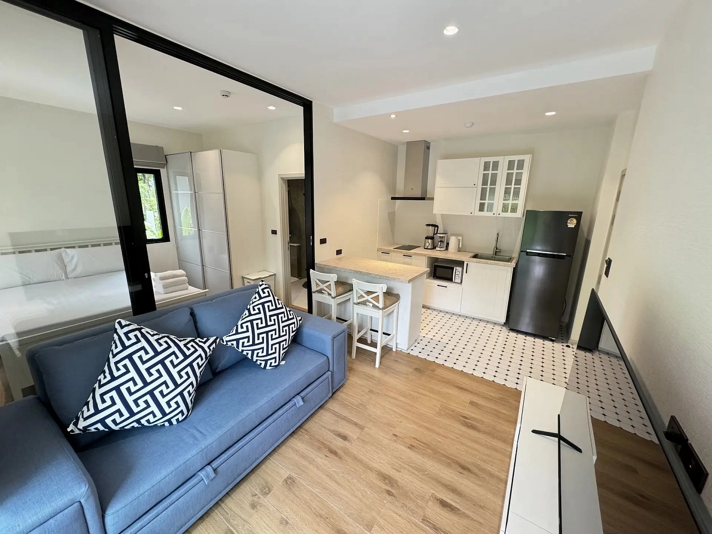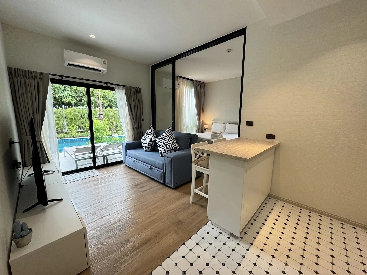 The Title Halo 1 – Mercury (ME 105) – 1-bedroom (36 м²) — квартира в корпусе Mercury жилого комплекса The Title Halo 1 в северной части острова, в пешей доступности от моря. Расположена на 1 этаже с террасой и выходом к бассейну. Полностью меблирована в скандинавском стиле с элементами минимализма, светлые тона, продуманная планировка.