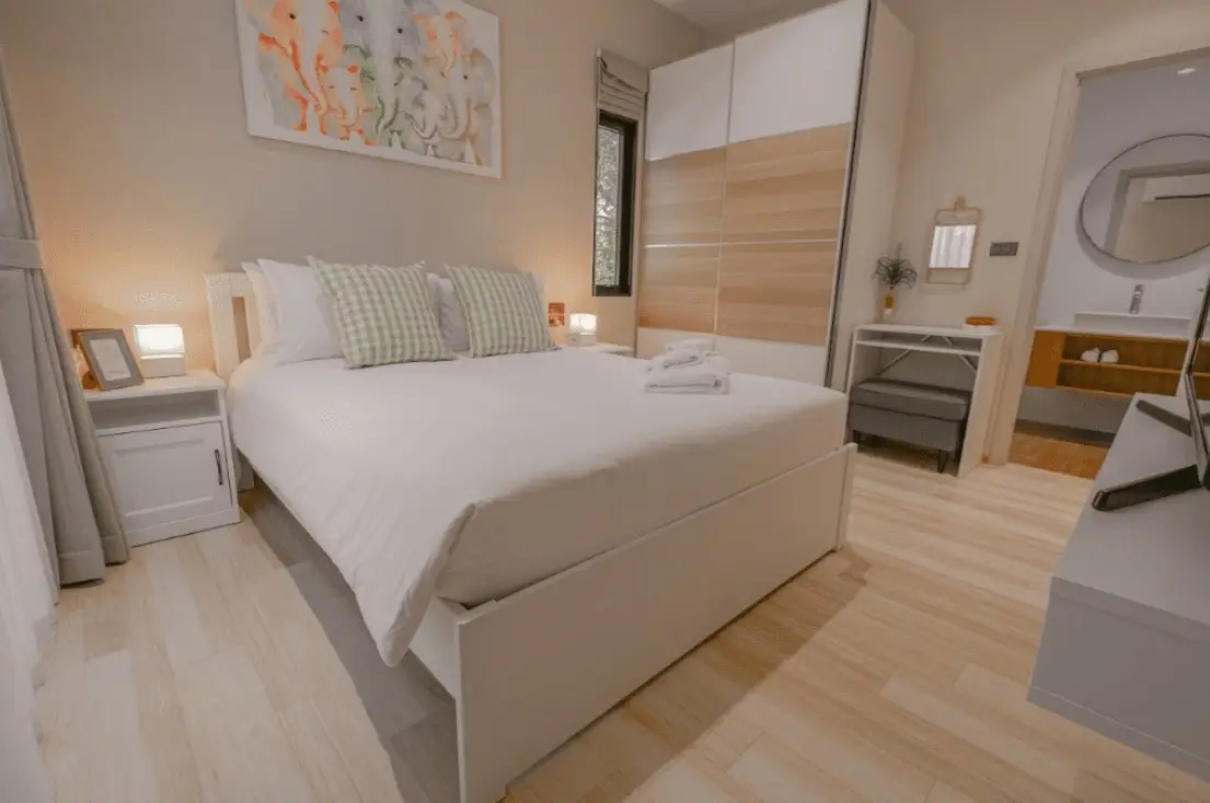 - Типы квартир: 1–3 спальни с современными интерьерами, панорамными окнами и видом на природу