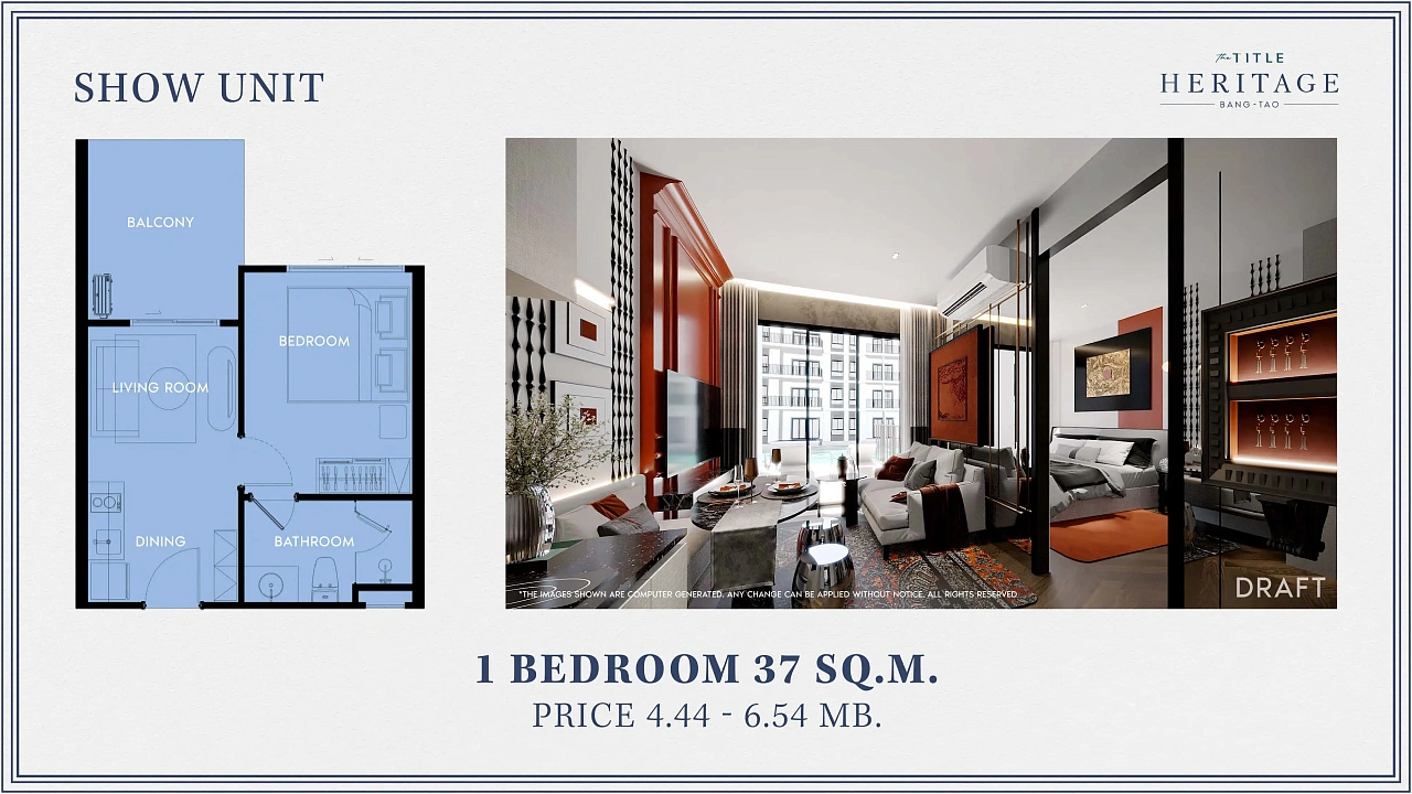 The Title Heritage – проект от Rhom Bho Property, тайской публичной компании, лидирующей на рынке недвижимости с 1989 года. Застройщик известен своим опытом, качеством строительства и надежностью, что подтверждается пятью успешно реализованными проектами в линейке The Title: