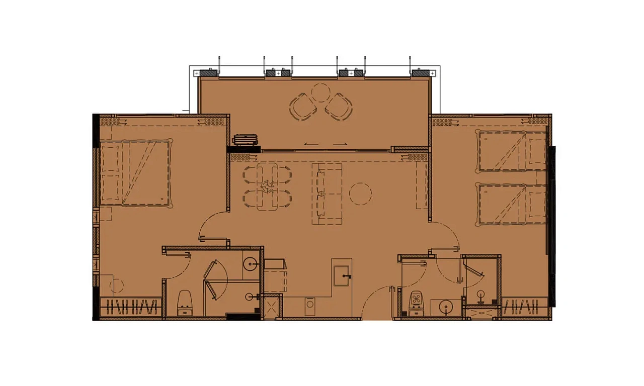 Проект создан для абсолютного комфорта резидентов: здесь есть огромные тропические бассейны, современные фитнес-зоны для спорта, уютные видовые зоны отдыха и круглосуточная охрана. А вокруг комплекса, в комфортной пешей доступности — лучшие пляжные клубы (Catch, Xana) и пышные поля для гольфа. -