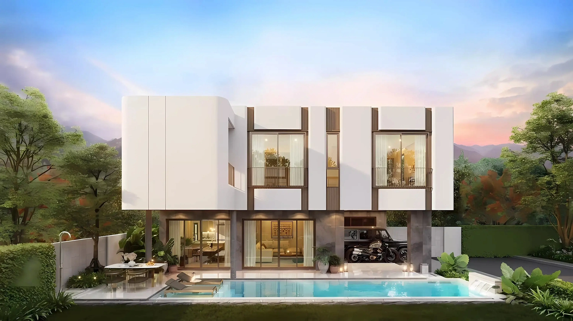Каждая шикарная вилла здесь (от 265 м²) предлагает 3 просторные спальни, многофункциональную комнату, роскошные ванные, а главное — огромный частный бассейн (3х12 м), террасу для барбекю и тропический сад! В комплексе есть грандиозный клубный дом, фитнес, сауны, коворкинг, парки и даже домики на деревьях. -