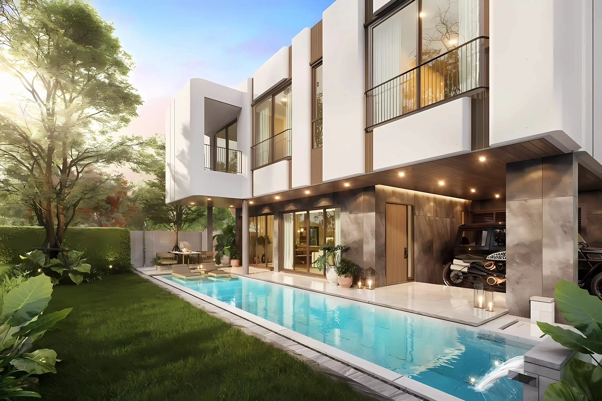 Резерв роскошной виллы составляет всего 200,000 бат. Сдача — в 1 квартале 2027 года (стройка идет 16 месяцев). Контрактный платеж — 25%. Оставшаяся сумма беспроцентно разбита на 5 комфортных платежей по 15% строго в зависимости от конкретных этапов возведения и отделки вашего дома. -