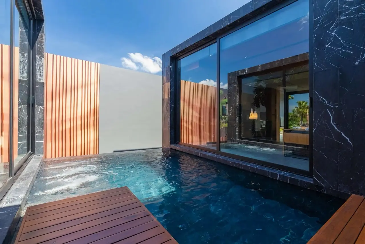- Комфорт: частные бассейны, террасы и просторные интерьеры