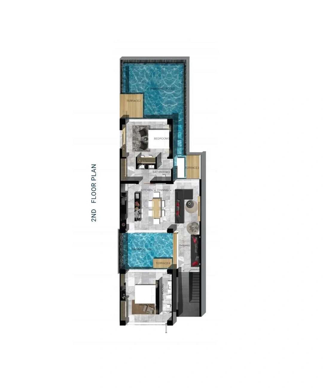 - Комфорт: частные бассейны, террасы и просторные интерьеры