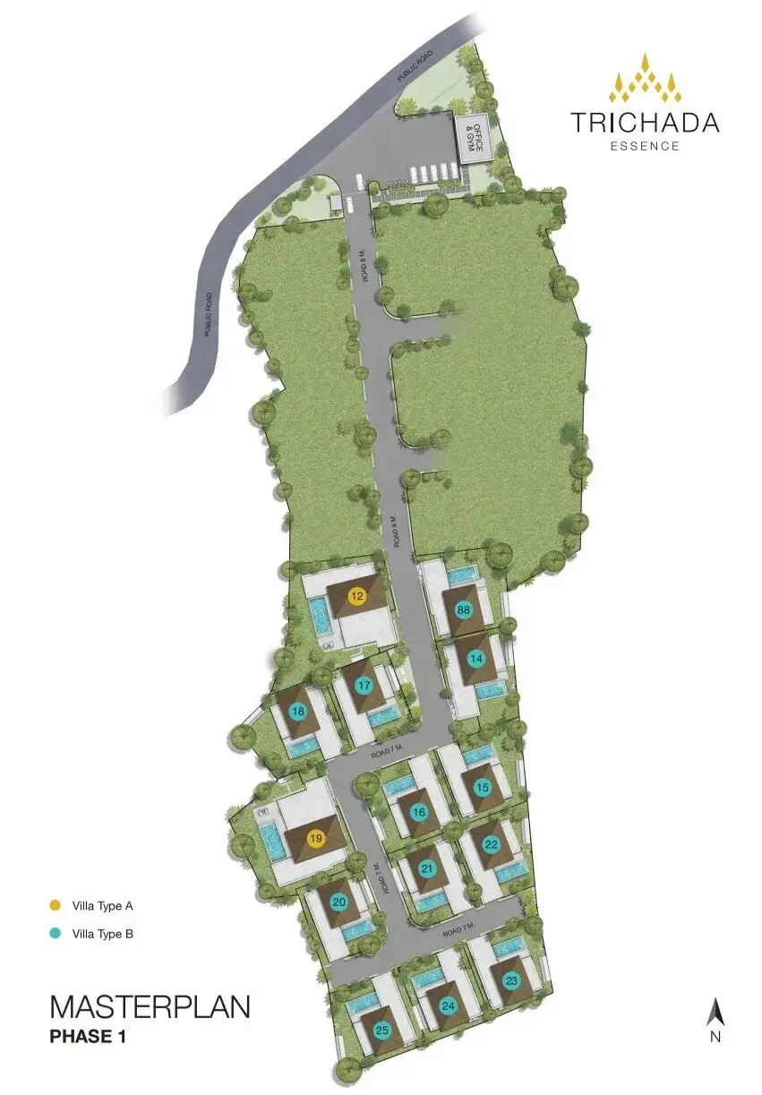 Trichada Essence — это роскошная закрытая коллекция из 25 элитных одноэтажных вилл с огромными бассейнами, утопающих в тропических садах. Комплекс находится в престижном районе Bang Tao (всего 3 км или 5-7 минут езды от пляжа). Проект гарантирует вам тотальную приватность, комфорт и потрясающий современный стиль. -