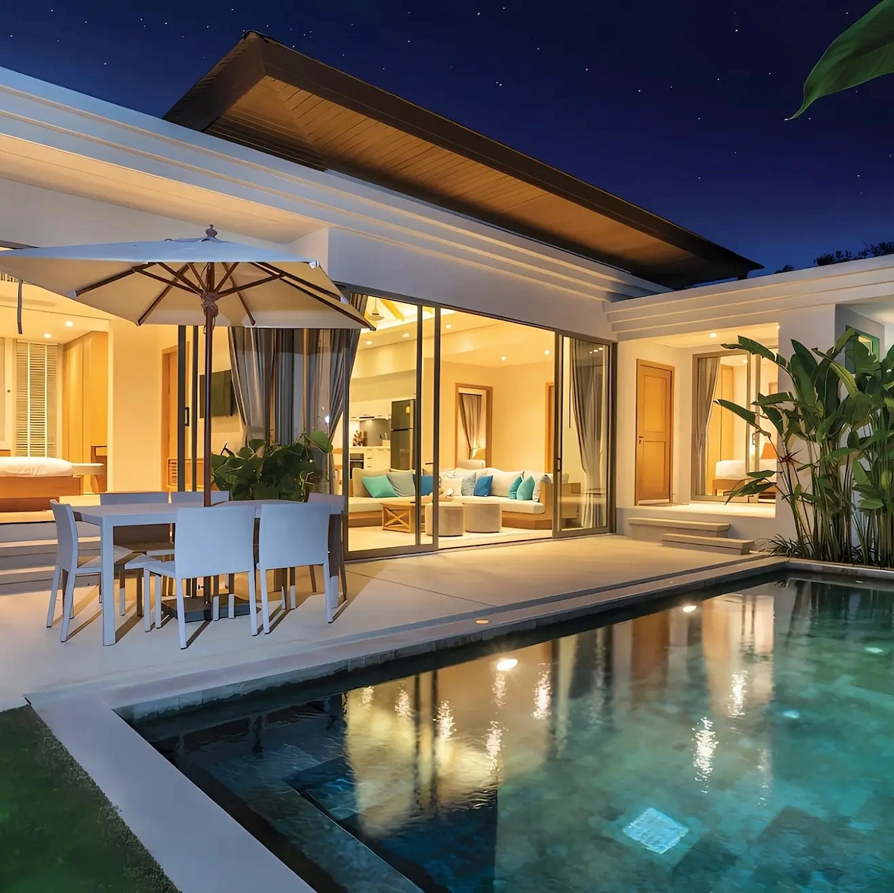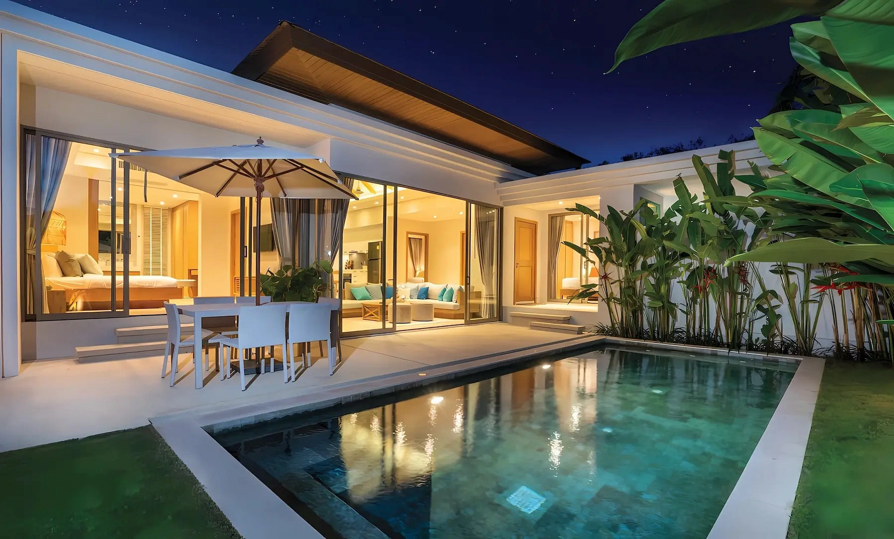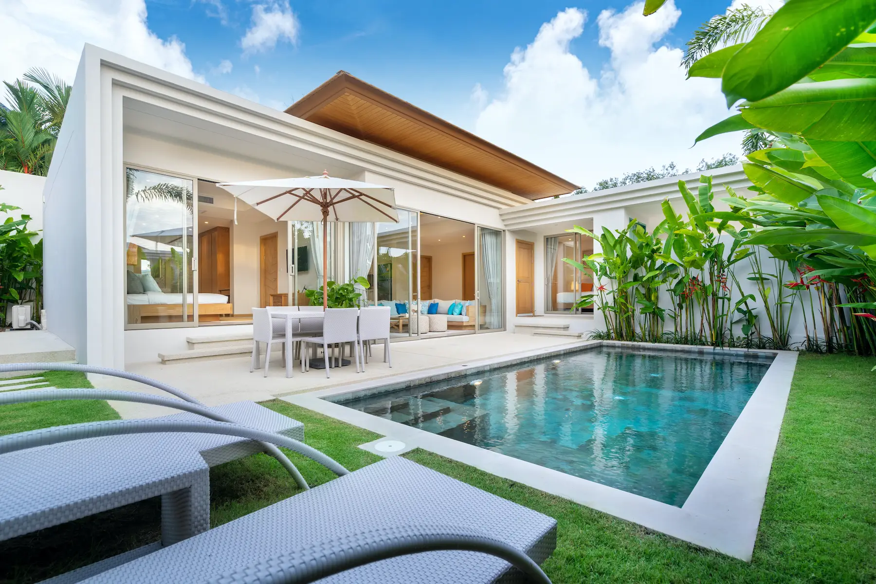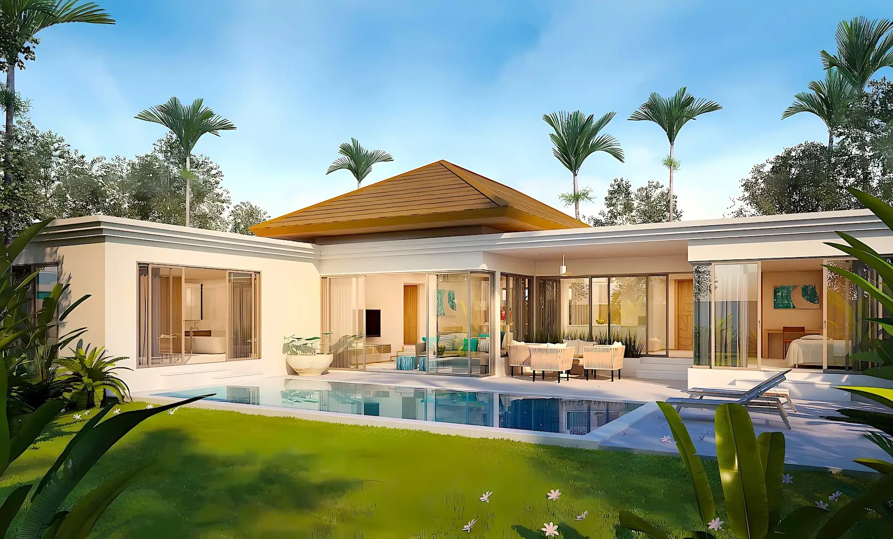 Trichada Essence — коллекция премиальных одноэтажных вилл с бассейнами в тропических садах на западном побережье Пхукета, объединяющая приватность, комфорт и современный стиль.